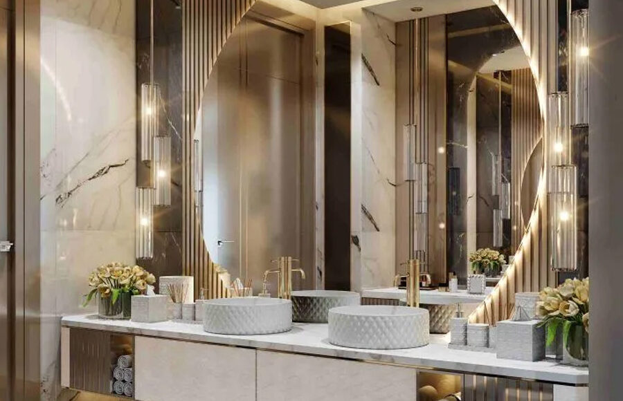 Incorporate architectural elements like columns and marbled flooring.